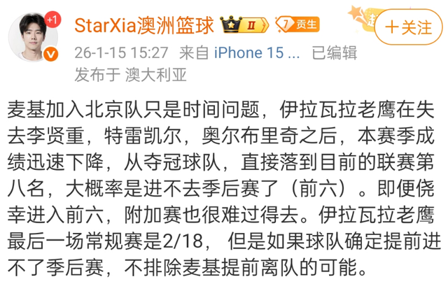 对于北京首钢来说,如果能够得到麦基这位顶级外援,那么冲击总冠军的概率会非常大。